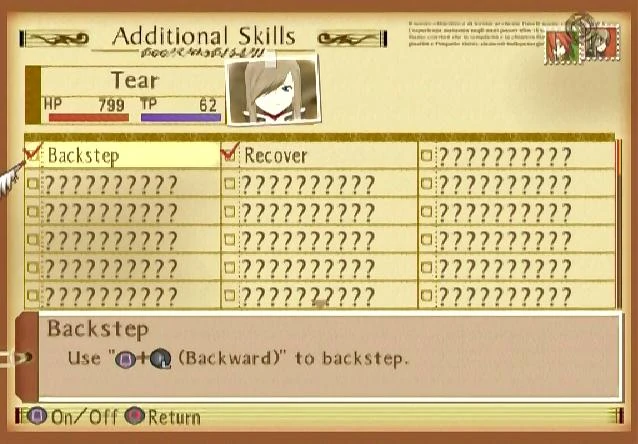 Ermöglicht es, Fonic Artes an der Stelle der Zauberdauer fortzusetzen, an der sie unterbrochen wurden. Hiervon können ausschließlich Tear, Jade, Anise, Natalia und Asch Gebrauch machen. |